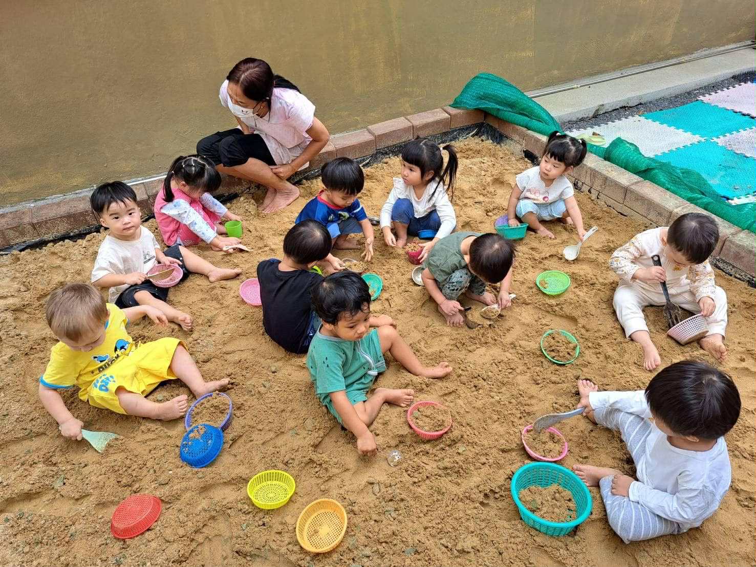 We follow a play-based learning approach that allows children to explore the world around them through sensory experiences, music, storytelling, and gentle routines.